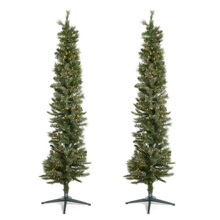 Home Heritage Stanley 7 Artificial Pine Slim Christmas Tree W Lights 2 Pack Walmart Canada
